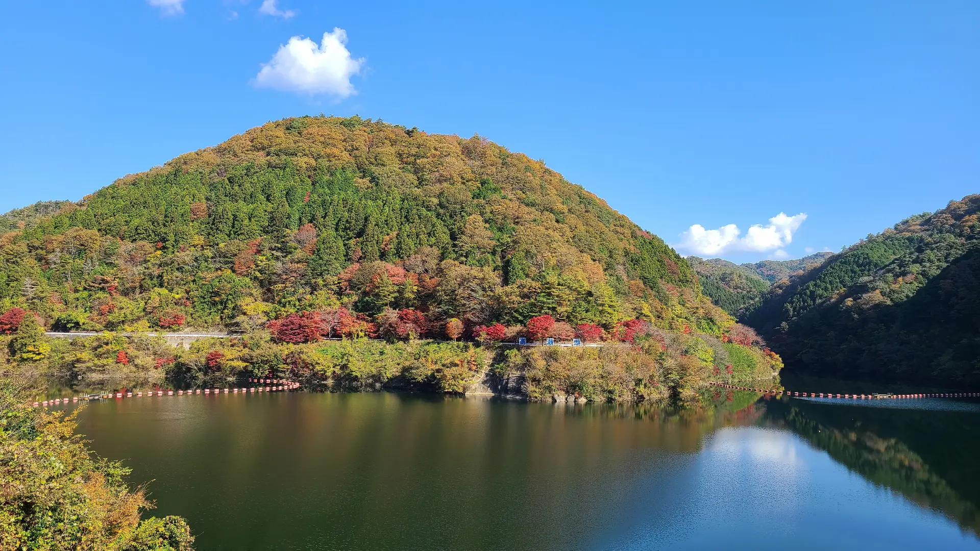 高瀬湖は島地川ダムの建設で生まれた人工湖で、周囲に植えられたモミジ(春は桜)を楽しめます。周辺には公園も整備され四季の自然を満喫しながら散策できます。