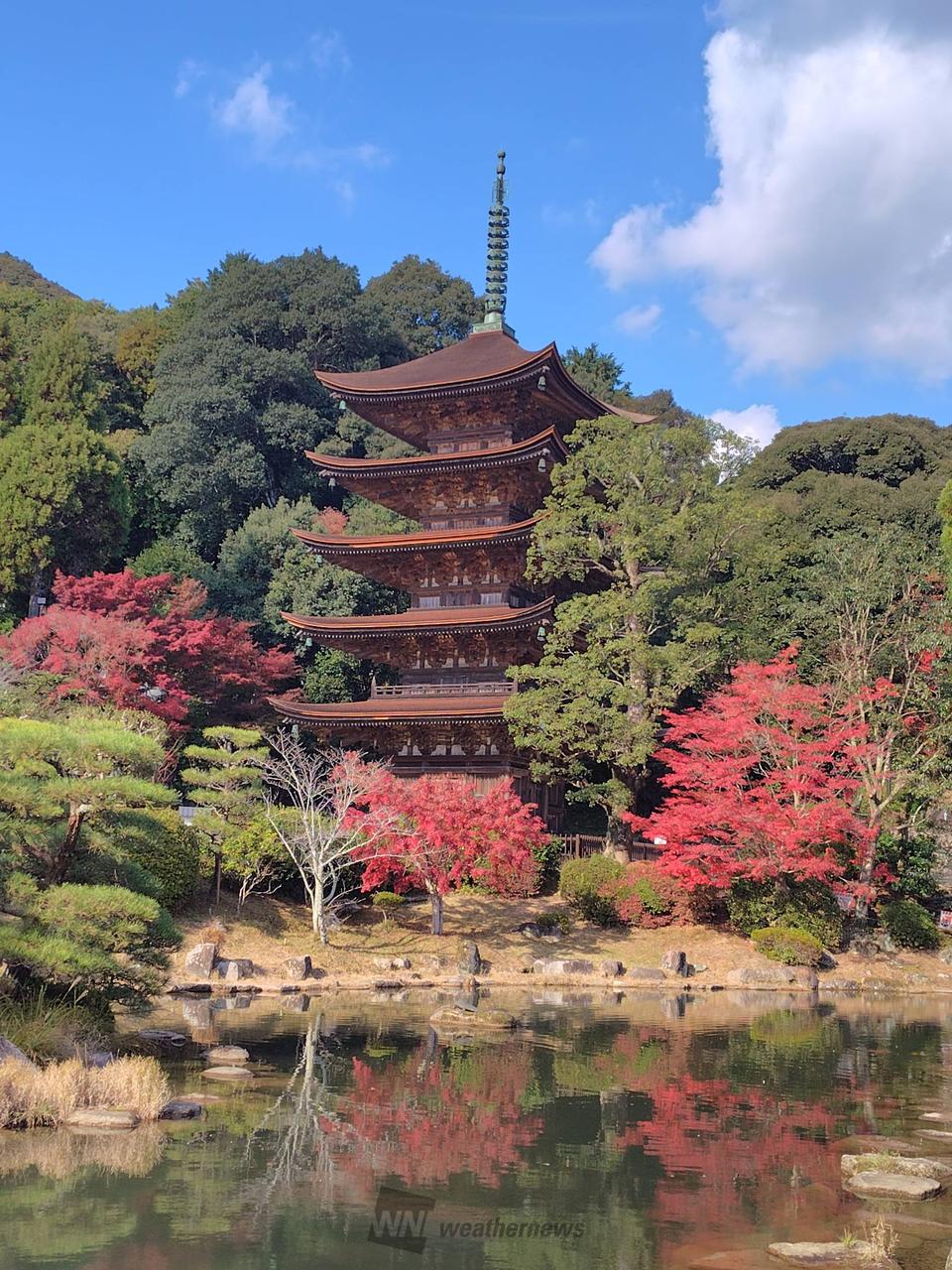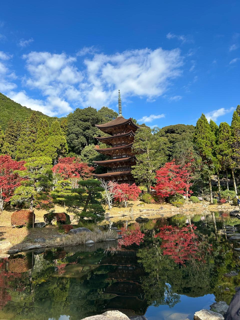 池のほとりでは池に映った五重塔を撮影することができます。