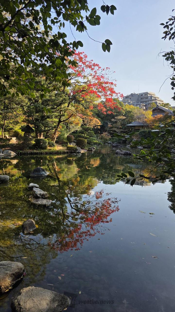 筑前黒田家六代藩主・継高公の別荘だった友泉亭を池泉廻遊式の純日本庭園として整備したものです。3000坪の広い敷地にカエデ約150本が美しく紅葉します。大広間の縁側に座り、紅葉した木々を眺めながら抹茶を飲めば時がたつのを忘れさせてくれます。