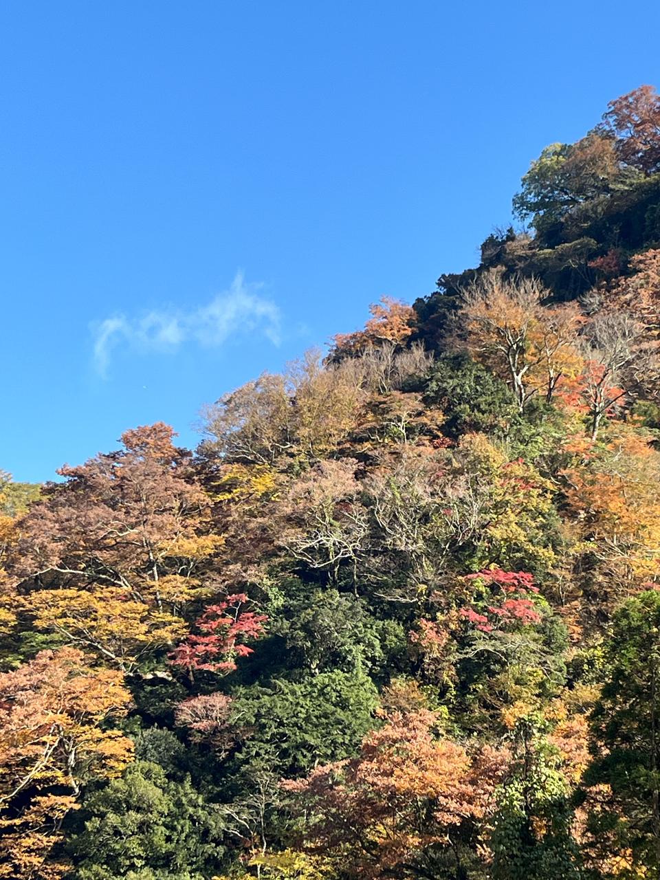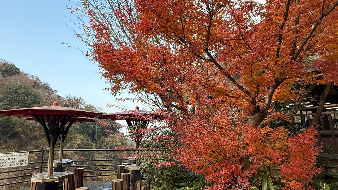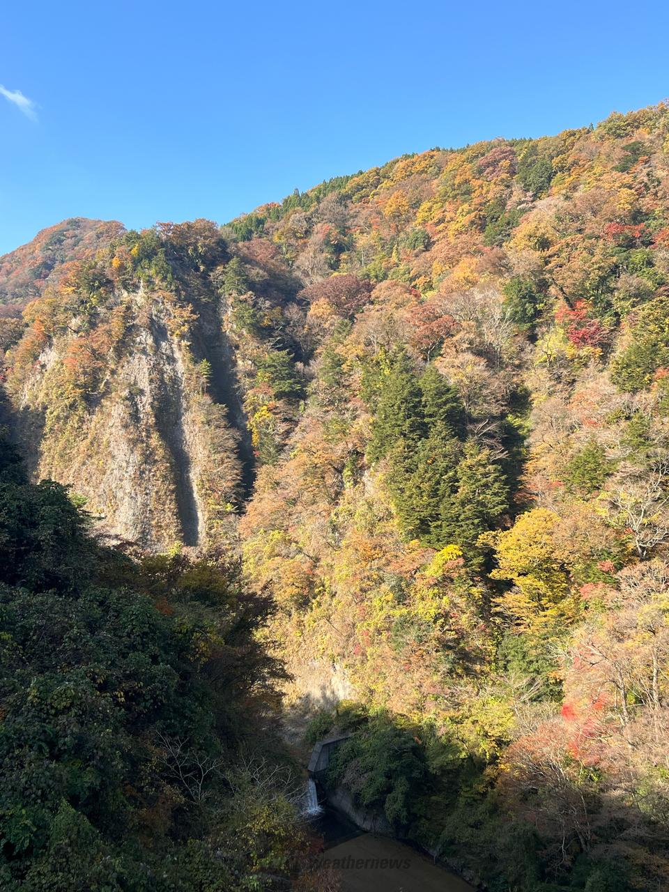 駐車場からの展望をはじめ、天狗の滝周辺など山全体で美しい紅葉を御覧頂けます。県道40号線玖珠川沿い約2kmにわたり、断崖絶壁に紅葉が楽しめます。