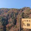一目八景。展望台からは夫婦岩、鳥帽子岩など奇岩秀峰が一望できます。近くには川床が一枚岩盤となっていて、その上を流れる清流と紅葉が絶景の錦雲峡や、麗谷(うつくしだに)があります。