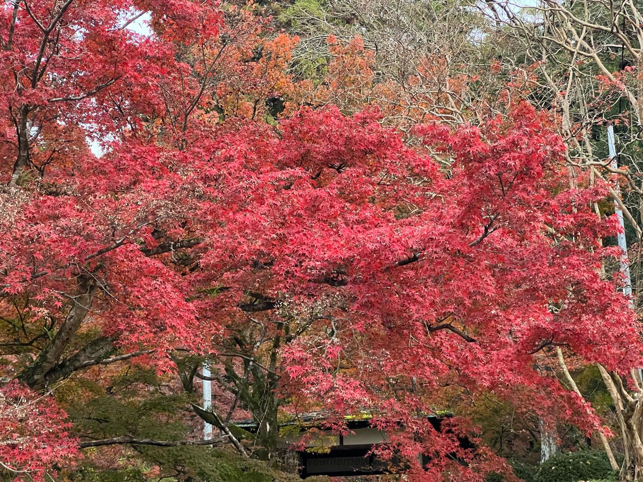 729年創祀の仁比山神社は九年庵のすぐそばにあります。一帯は全てモミジの古木で参道や境内の紅葉を楽しむことができます。