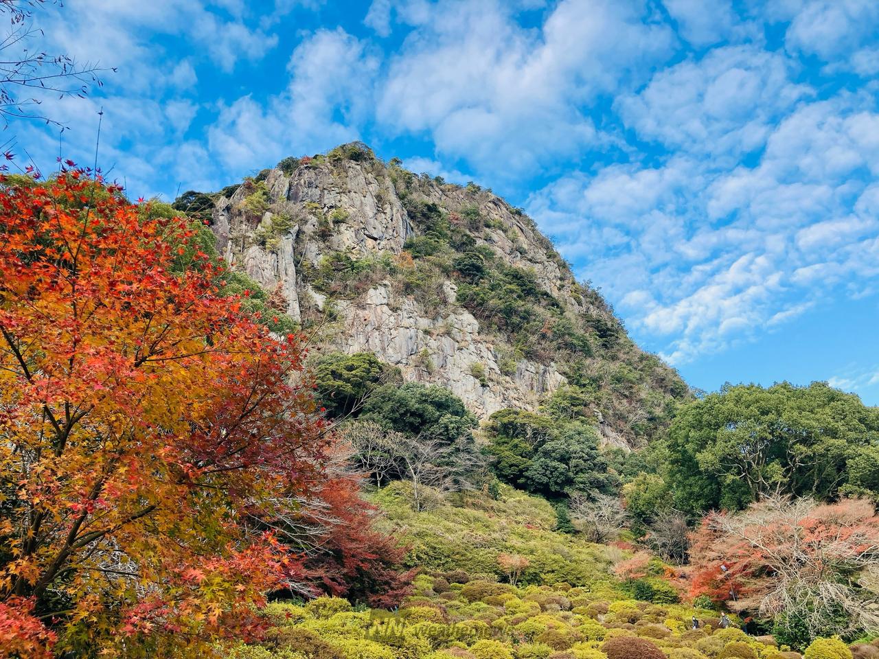 標高210mの御船山を借景に、15万坪の庭園敷地内に広がる紅、橙、黄色の重なりは、まさに錦秋です。御船山の懐を金色に染める樹齢150年の大モミジの古木に、黄金山などの名物スポット、池越しに眺める紅葉の広がりなど見どころがいっぱいです。