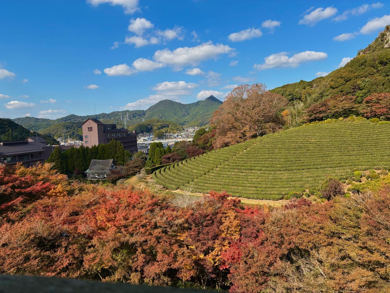 園内や背後の山に植えられたヤマモミジなどが色鮮やかな紅葉の姿を見せ、赤や黄に色づいた葉が陽に照らされ輝くさまはどこか郷愁を呼び起こします。段々畑のお茶の木も白く可憐な花を次々に咲かせ、この季節を飾ります。茶屋の裏の紅葉トンネル太鼓橋と大滝周辺がおすすめスポットとなっています。例年、11月中旬から最盛期を迎え、12月上旬までお楽しみいただけます。