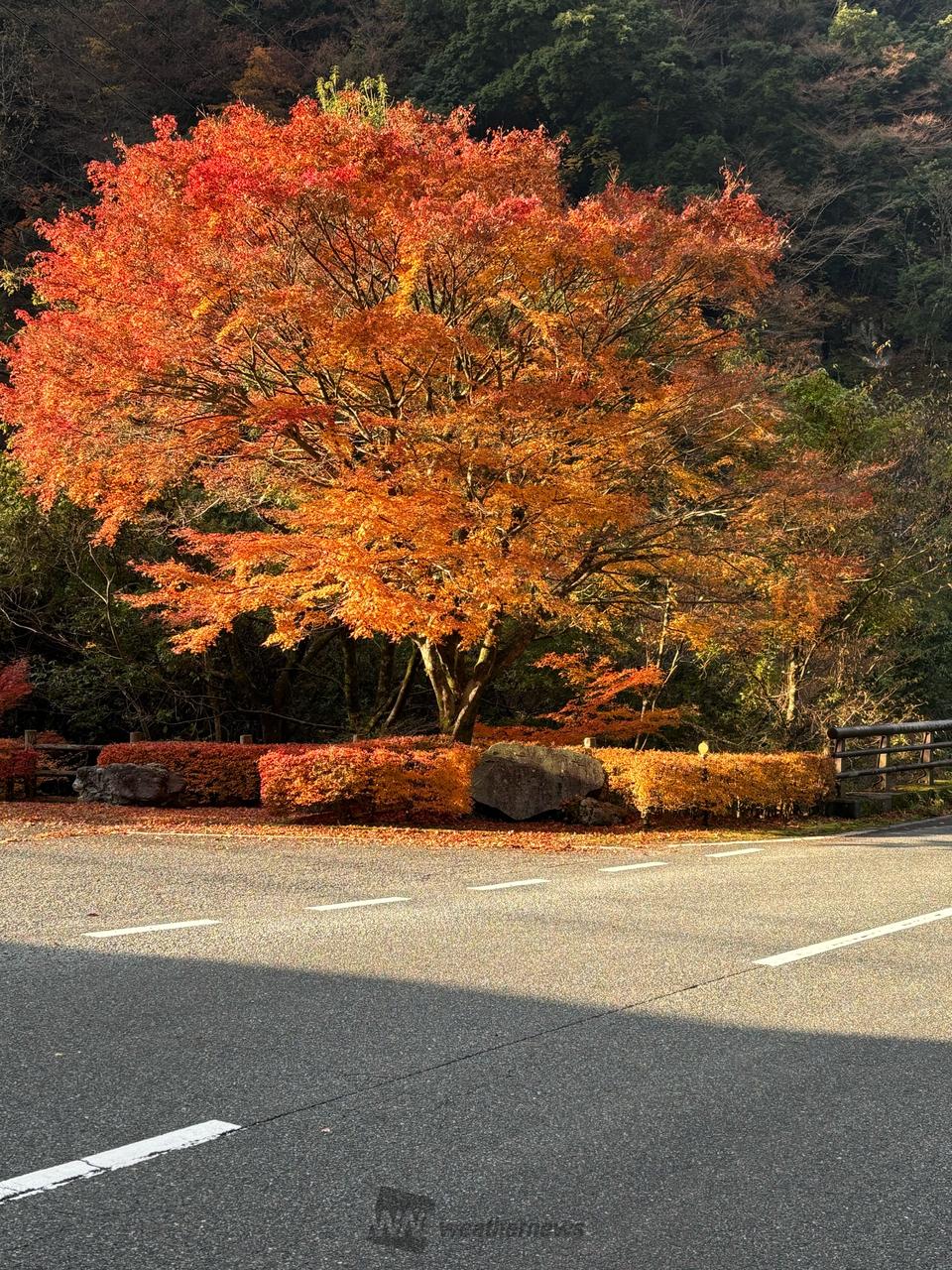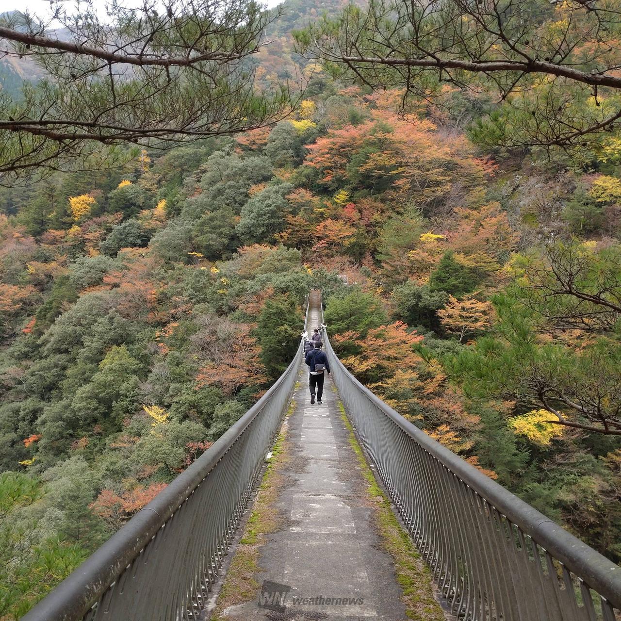モミジ、カエデ、ツガ、ドウダン、ブナなどが色とりどりに紅葉します。特にモミジは真赤に色づきます。五家荘葉木には、橋長116m、高さ55mの「梅の木轟公園吊橋」があります。渓谷に架けられた吊橋から見る美しさは圧巻です。また、吊橋から続く遊歩道を歩くと、「梅の木轟(とどろ)」があります。