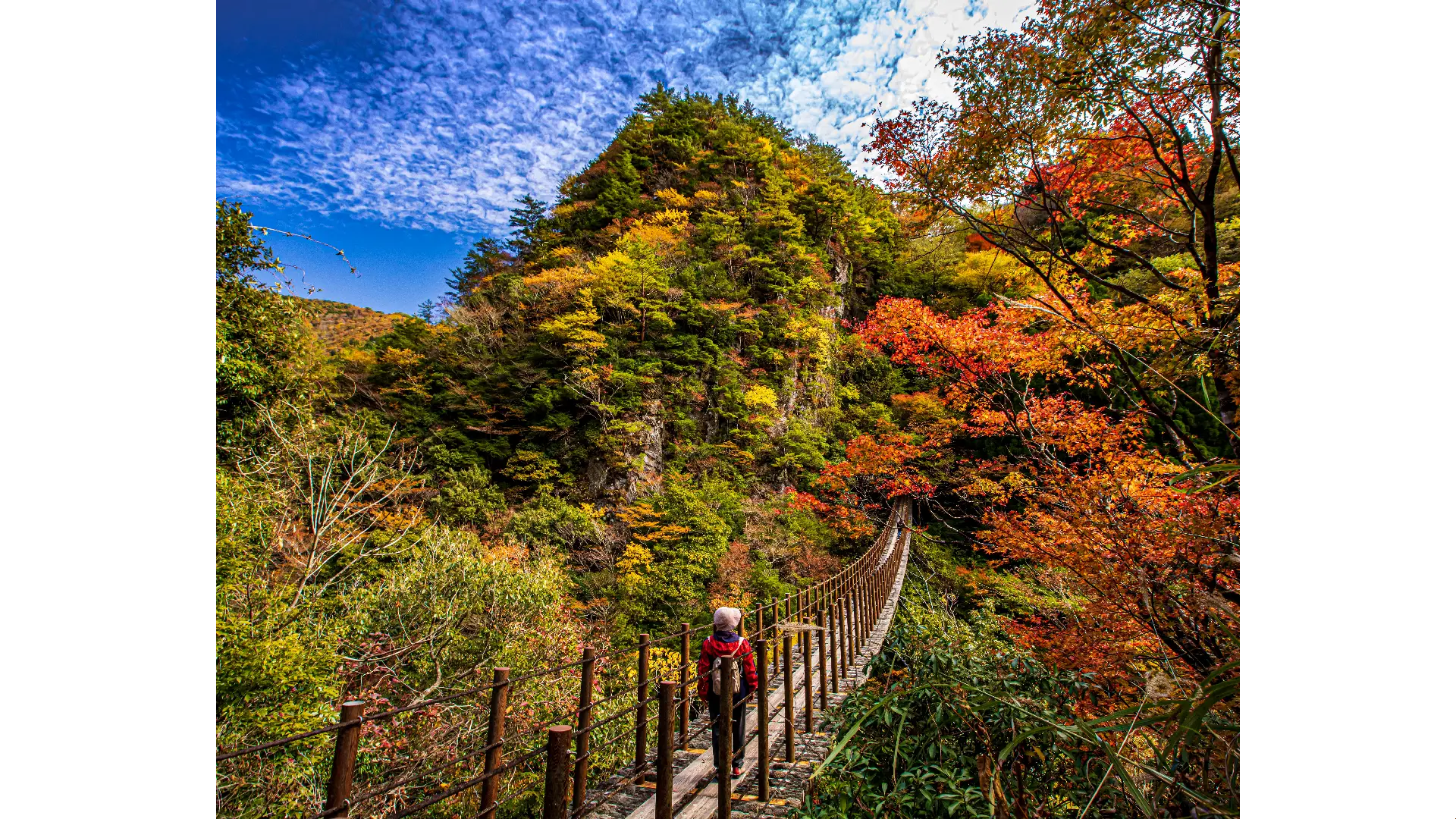 モミジ、カエデ、ツガ、ドウダン、ブナなどが色とりどりに紅葉します。特にモミジは真赤に色づきます。五家荘樅木には、樅木の吊橋や観光施設「五家荘平家の里」があります。樅木の吊橋は、「あやとり橋」と「しゃくなげ橋」の2本の橋が並んで渓谷に架かっており絶景が広がっています。五家荘平家の里は、平家落人の暮らしを紹介する平家伝説館等があります。周りの紅葉を眺めながら五家荘の自然を満喫して下さい。