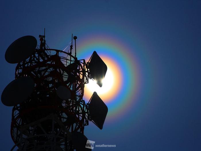 注意)花粉光環を見る際は、建物などで遮るなどし、太陽を直視しないようにお気をつけください。