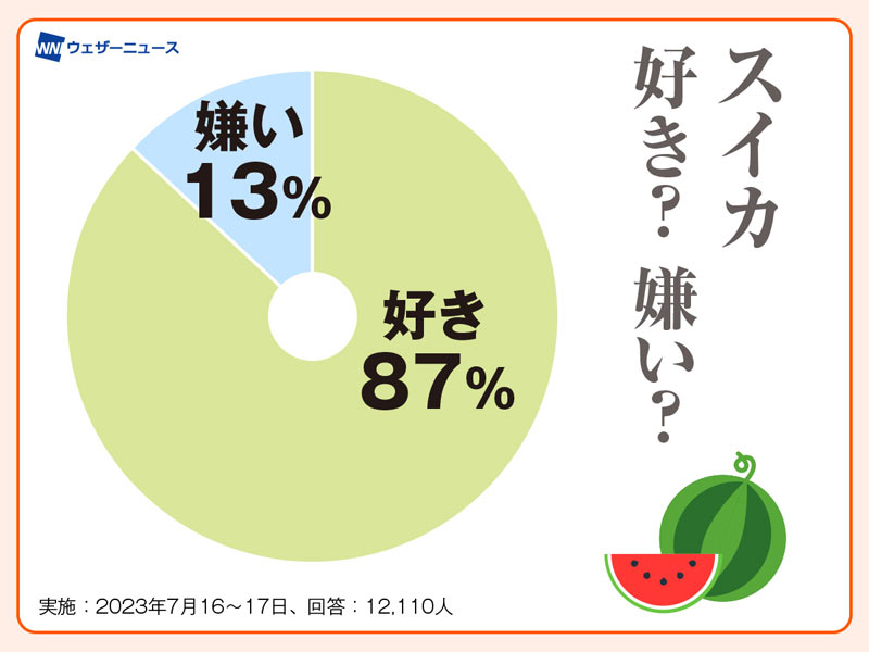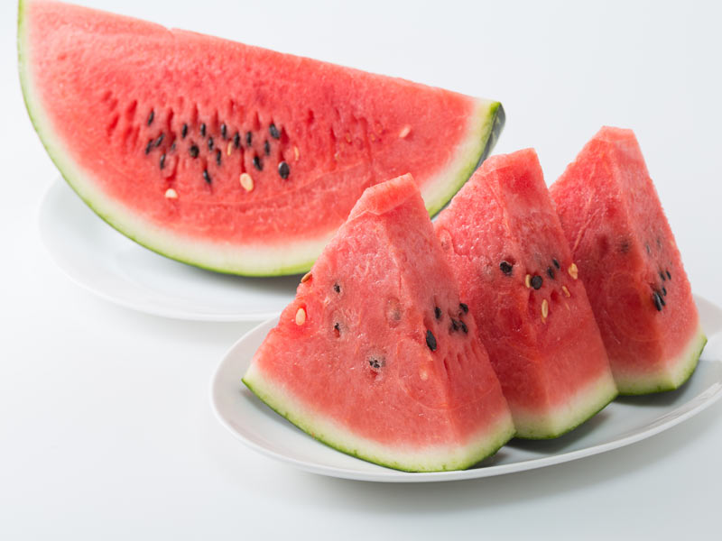 「スイカは90%以上が水分であるため、冷たいスイカを食べると冷たいものを飲んだのと同じように体を冷やす効果があります。