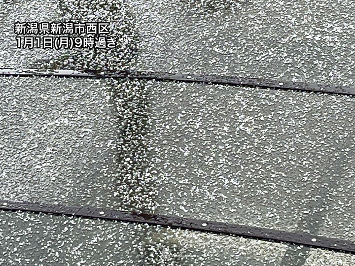 ただ、大気の状態が不安定になっているため所々で雲が発達し、9時過ぎには新潟市内で霰(あられ)が強く降りました。霰が強く降ると、気温が高くても道路に積もって滑りやすくなりますので、車を運転する際は注意が必要です。