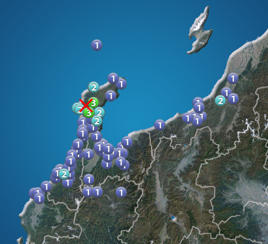 石川県で震度3の地震発生