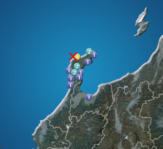 石川県で震度4の地震発生