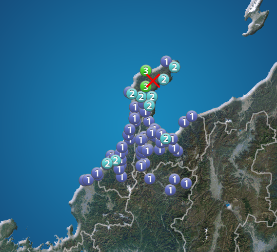 石川県で震度3の地震発生