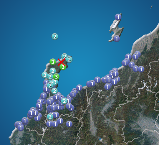 01月01日 22時11分頃、石川県で最大震度3を観測する地震がありました。