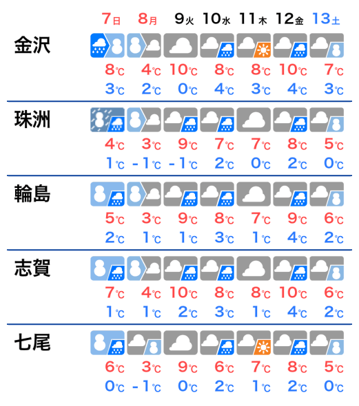 令和6年能登半島地震により大きな被害が発生している石川県など北陸では、来週にかけて雨や雪の降る日が多くなります。