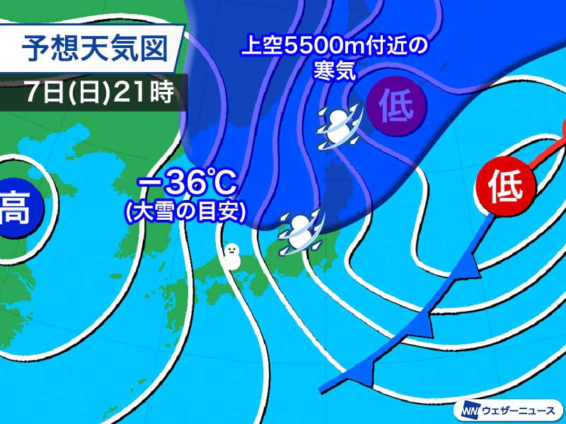強い寒気の南下で大雪のおそれ