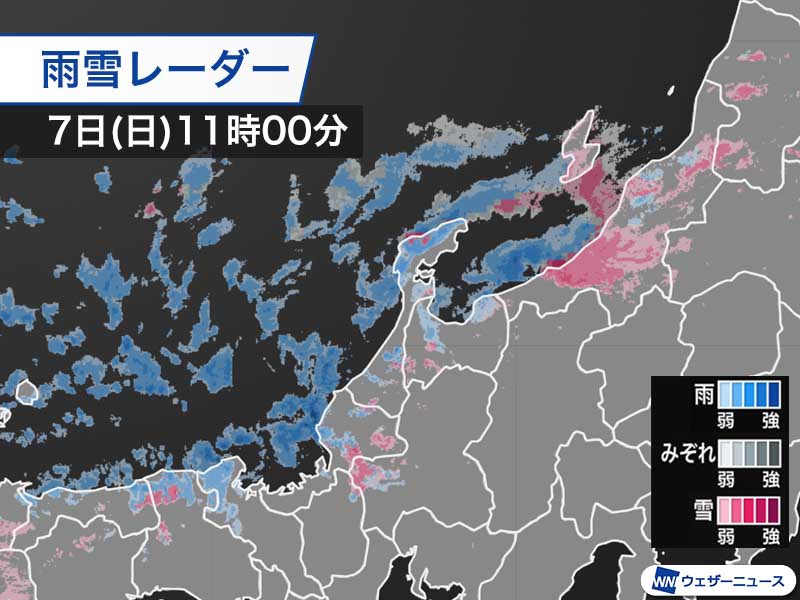午前中は新潟県を中心に雪の所が多く、石川県でも内陸部を中心に雪の所が増えてきました。