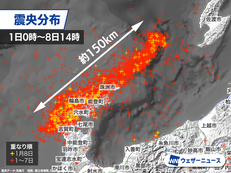 能登半島地震から1週間 依然、震度5強以上の発生確率は平常時の100倍超