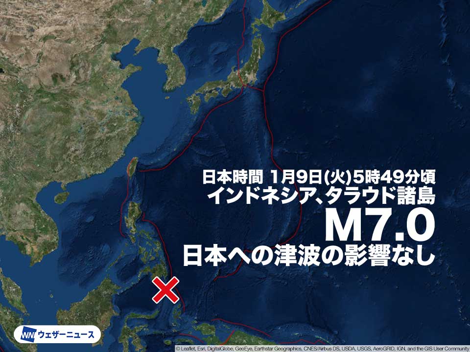 インドネシア付近でM7.0の地震 日本への津波の影響なし