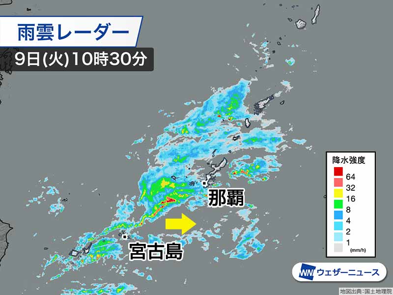 沖縄周辺を活発な雨雲が通過 夕方にかけて強雨や雷雨に注意
