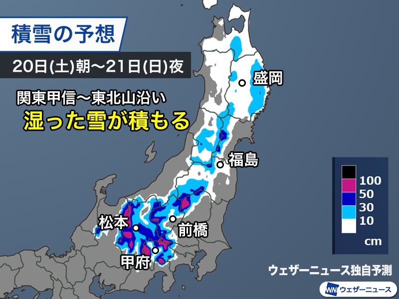 関東甲信や東北山沿いは大雪のおそれ