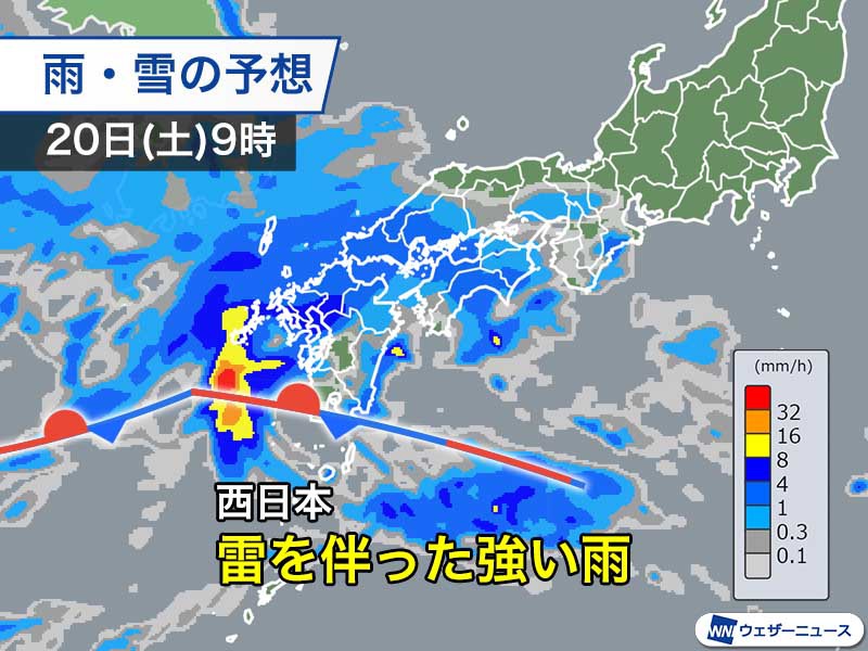 明後日20日(土)は西日本で強雨注意