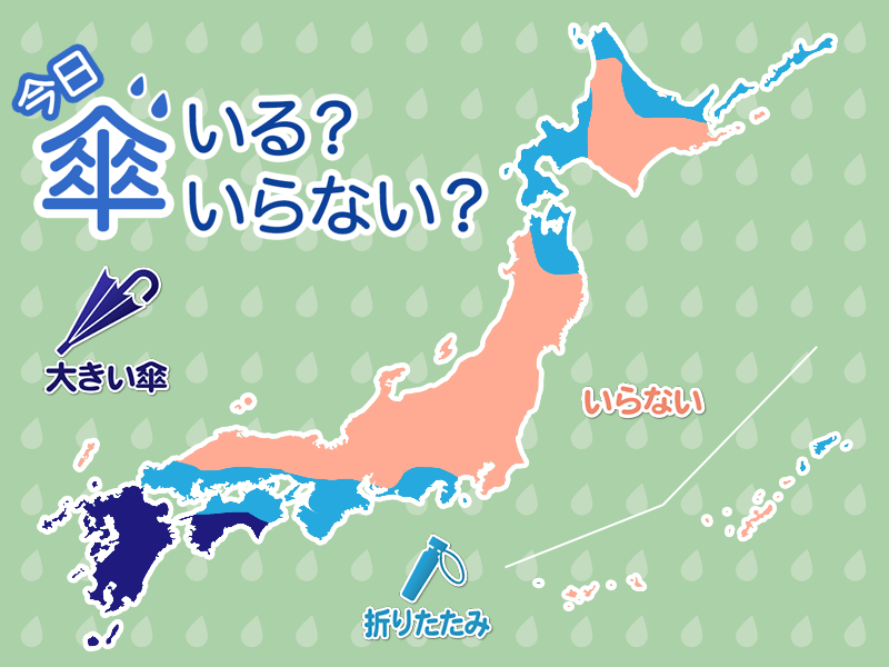 種子島や屋久島では強く降る可能性も。外出には大きな傘があると良さそうです。