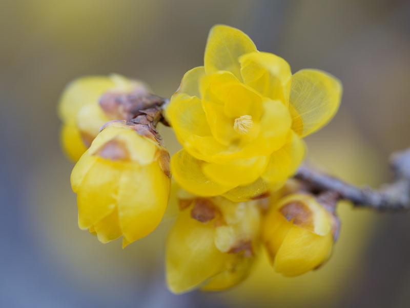 見た目はかわいらしく、香りは甘いロウバイの花。冬の穏やかな日に、蝋細工のような黄色のロウバイの花を観に公園などを散策するのも楽しいでしょう。