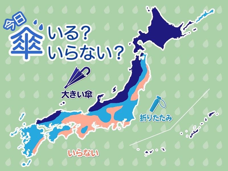 関東は夕方以降、にわか雨や雪の可能性があります。外出時は折りたたみ傘があると安心です。