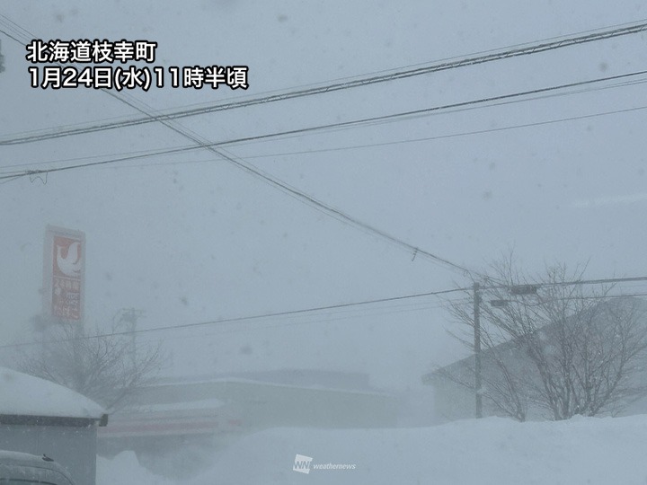 低気圧は午後になると陸地から少し離れるため、オホーツク海側の吹雪は次第に落ち着く見込みです。一方で、稚内など日本海に近いエリアは明日25日(木)にかけても猛吹雪が続くおそれがあります。