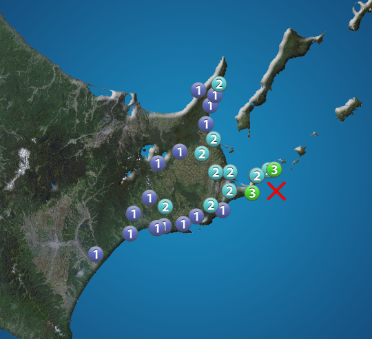 今日1月25日(木)13時29分頃、北海道根室市で最大震度3を観測する地震がありました。