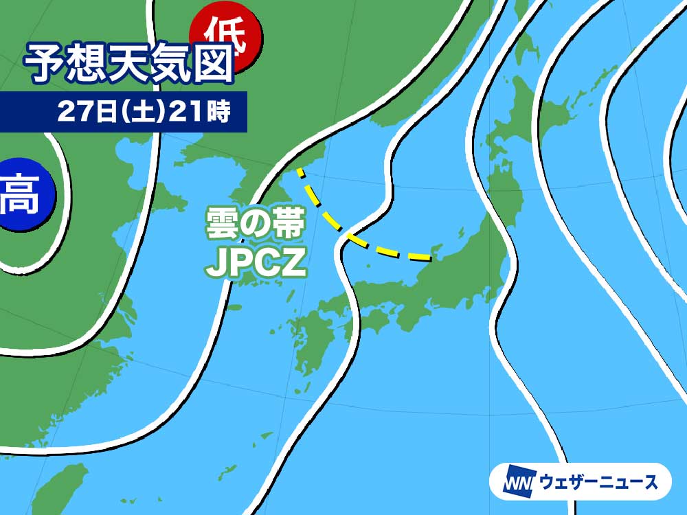 午後にかけても同じような気圧配置が続きますので、北海道の日本海側やオホーツク海側は雪が降りやすく、吹雪による視界不良に注意が必要です。東北から北陸にかけても山沿いを中心に雪が降り、一時的に強まる可能性があります。週末のお出かけは路面状態の悪化にお気をつけください。