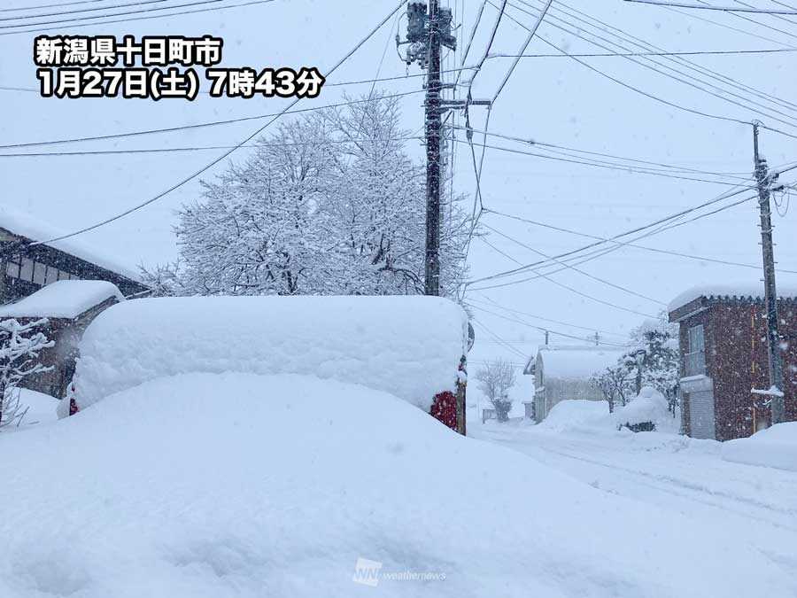 9時までの6時間に、新潟県十日町市で8cm、北海道福島町千軒で6cmの新たな雪が降りました。本州の沿岸部では気温が上がり雨やみぞれになっている所もありますが、山沿いを中心に降雪が続いています。北海道のオホーツク海側ではまだ風が強く、吹雪になっています。