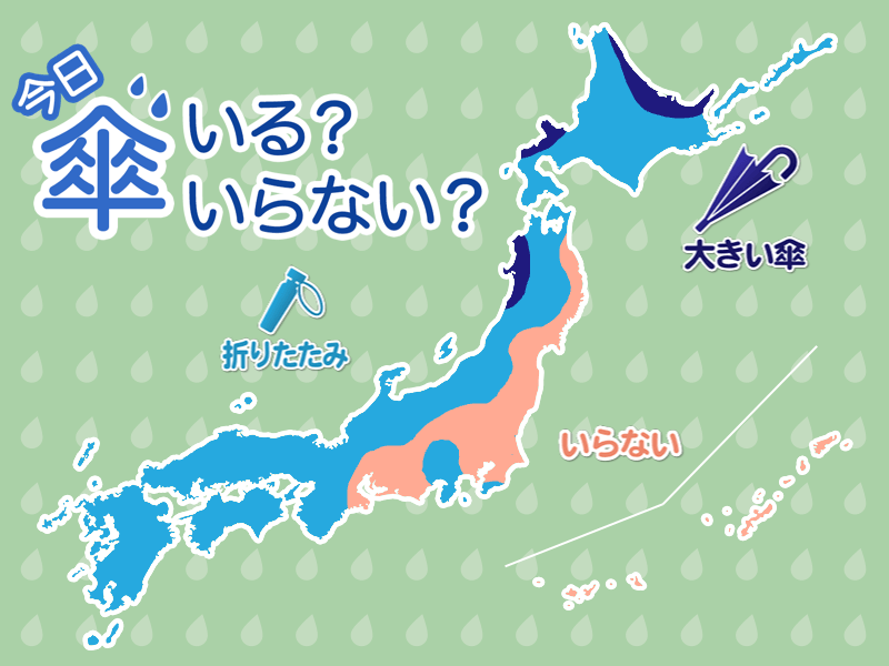 関東も沿岸部を中心に雨が心配です。外出には折りたたみ傘をご用意ください。