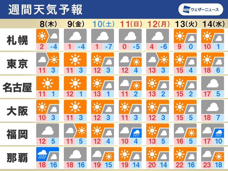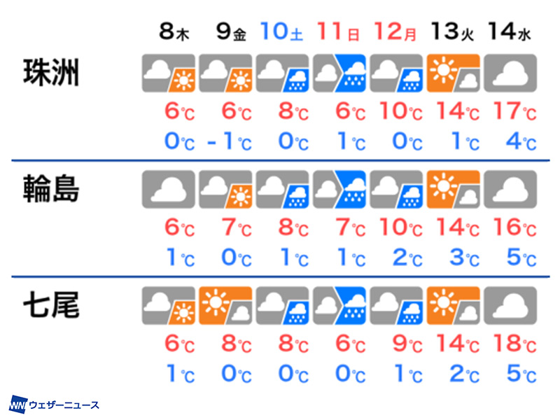三連休にかけては、冬の冷たい空気に覆われてこの時期らしい寒さが続きます。