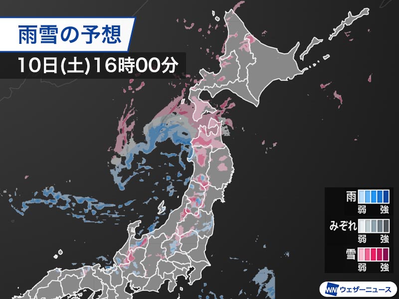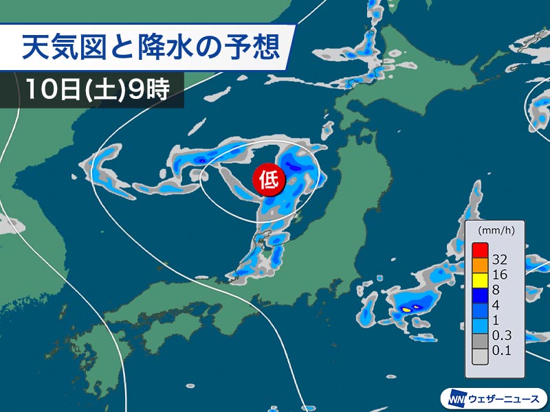 三連休初日の明日10日(土)は低気圧が通過する影響で、北日本〜北陸は雪や雨の降る所が多くなります。地震被災地も天気が崩れるため、復旧作業などは注意が必要です。