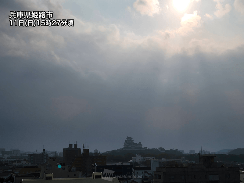 今日11日(日)は西日本の上空を寒気が通過しているため大気の状態が不安定で、朝から山陰などで雨や雪が降りました。