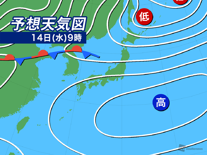 今日14日(水)も春本番の陽気が続き、各地で昼間は気温が上昇します。