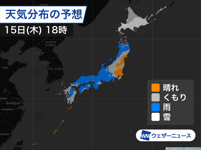 今日は前線が通過する影響で、全国的に雲が広がり、雪や雨のところが多くなります。天体観測には不向きな天気となりそうです。