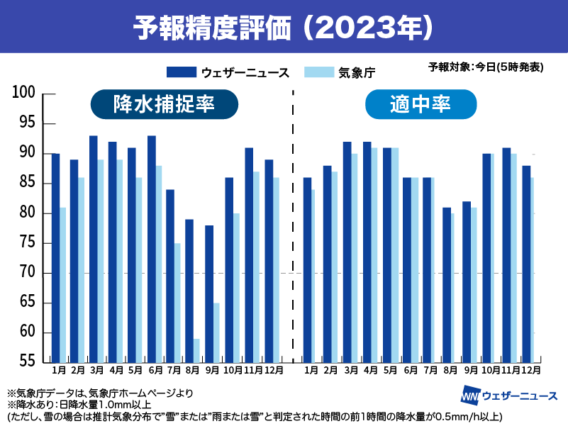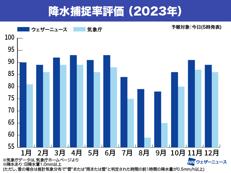 【降水捕捉率】年間を通して高水準 気象庁より高精度