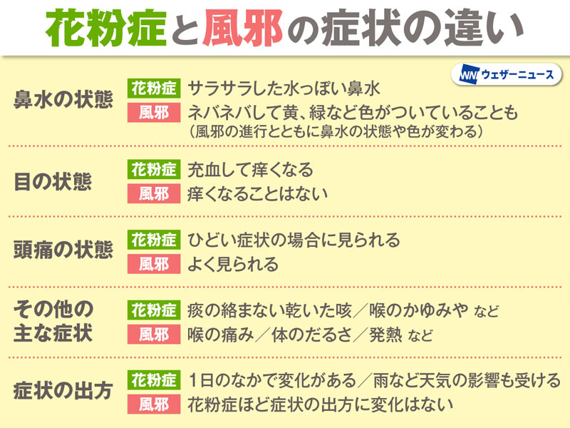 「花粉症」と「風邪」を見分けるポイント