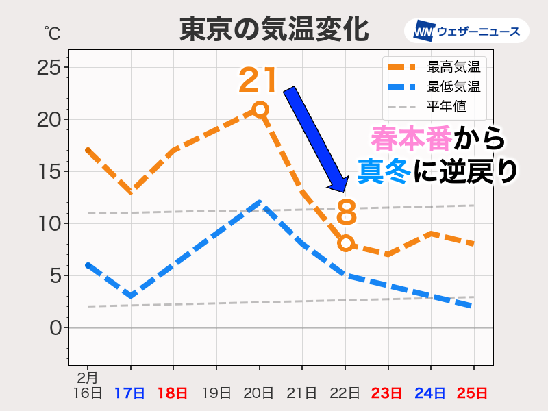 週末から再び気温上昇も、来週は気温が急降下して真冬に逆戻り