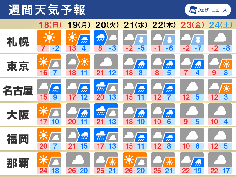 ・週中頃にかけ高温傾向 東京大阪で21℃