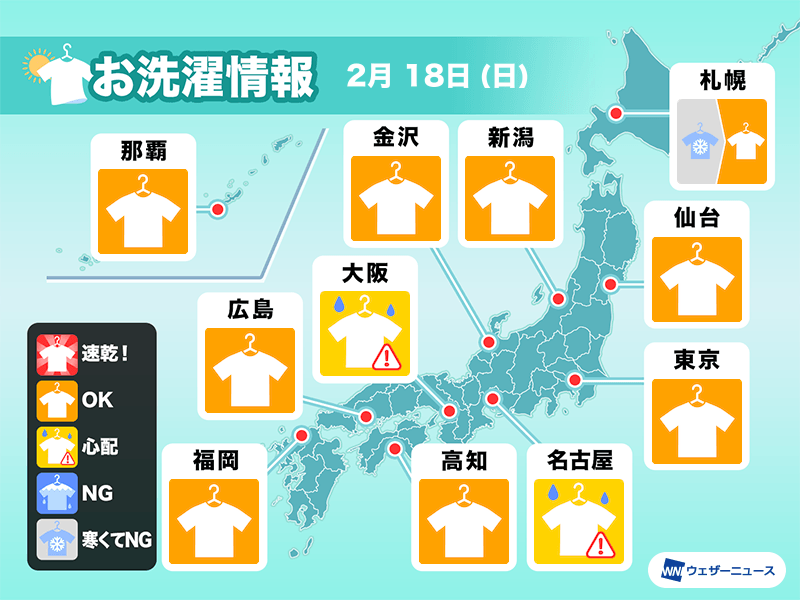 ただ、近畿から東海の太平洋側ほど雨が心配です。外出する際は部屋干しに切り替えることをおすすめします。