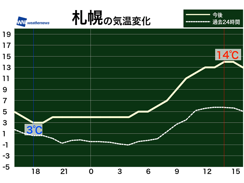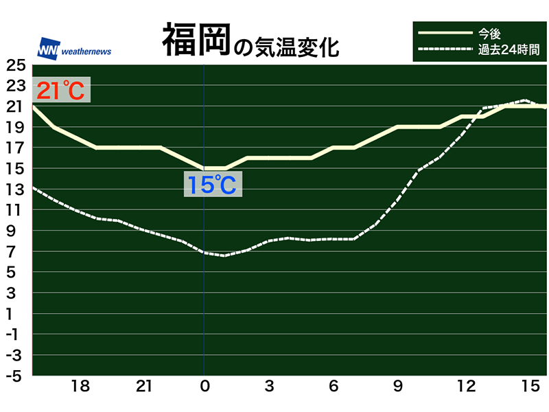 夕方から夜も気温は高めで、厚手の防寒具無しで過ごせる一日になります。