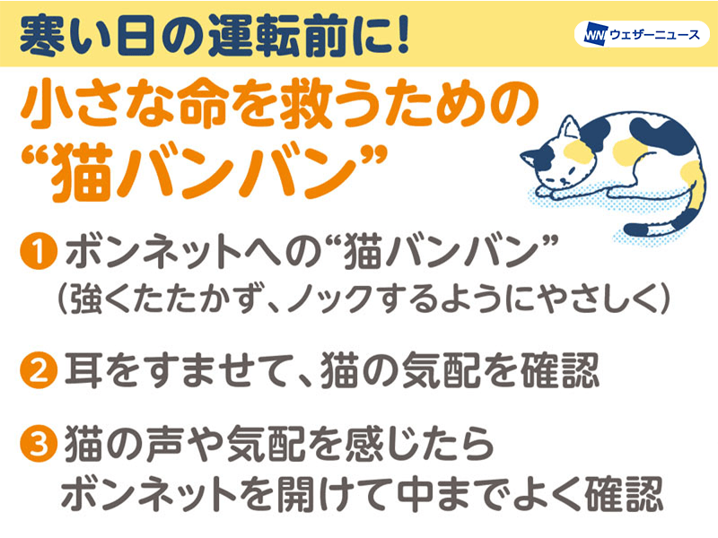 寒い日の運転前に“猫バンバン”! 小さな命を救うためにできることは?