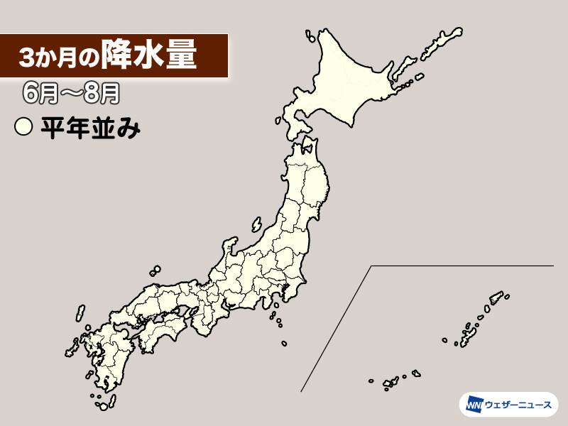 梅雨明け後は晴れる日が多く、夏を通した降水量はほぼ平年並みの予想です。