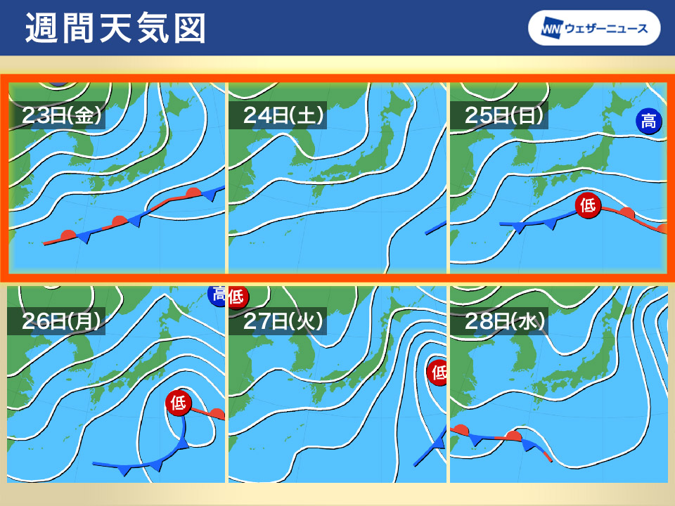 三連休中日の24日(土)は前線の活動が弱まり、広範囲で日差しが届きそうです。