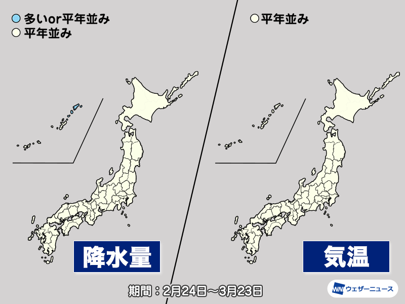 細かい気温傾向を見ると、3月上旬までは平年並みか低い傾向、その後は全国的に平年並みか高い傾向になっています。