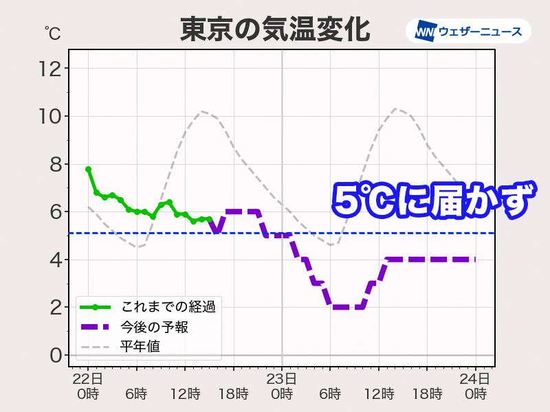 日中の気温は5℃を下回り推移か