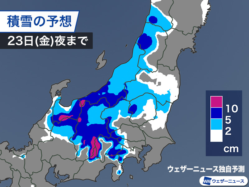 降水量はそれほど多くないものの、関東山沿いや甲信ではうっすらと積もる可能性があります。積雪による路面や足元の悪化に注意が必要です。